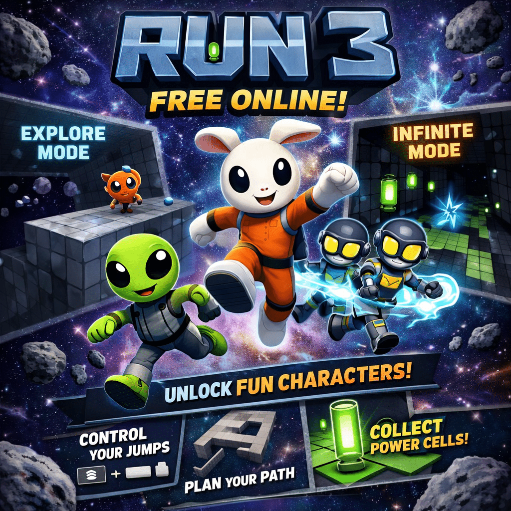 Run 3 is one of the most addictive endless runner games where you explore a mysterious galaxy filled with floating tunnels, tricky platforms, and gravity-defying challenges. Whether you’re a casual player or a competitive gamer, Run 3 offers a unique mix of speed, strategy, and skill that keeps you coming back for more.